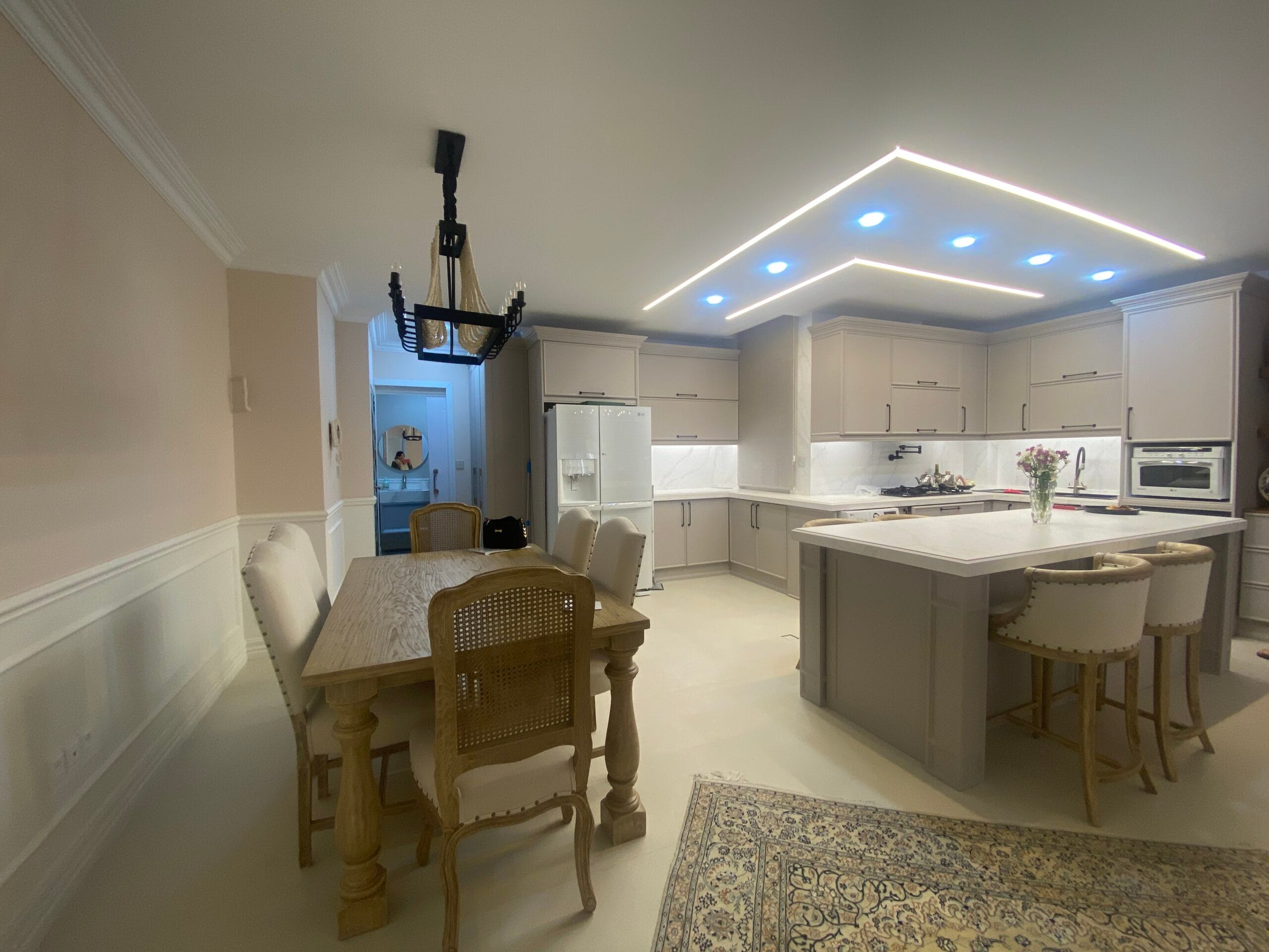 - سبک نئوکلاسیک: طراحی داخلی بر اساس اصول نئوکلاسیک، شامل جزییات معماری متناسب با تاریخ و فرهنگ، مانند گچبریها، کتیبهها و ستونهای زیبا میباشد که به فضا شکوه و زیبایی خاصی میبخشد.